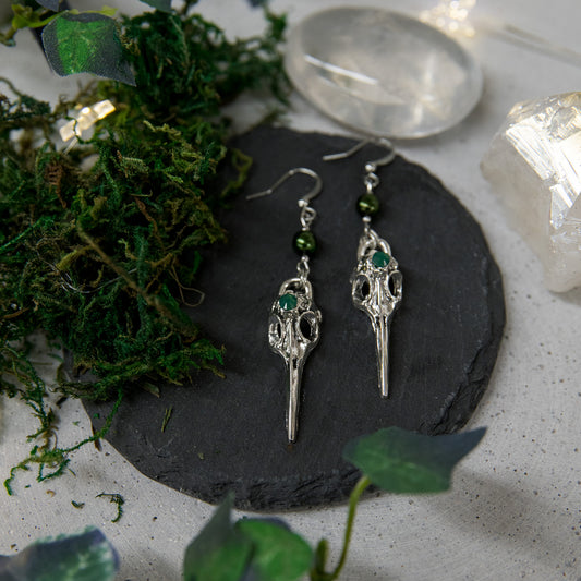 “NEVERMORE” – RAVEN PEARL EARRINGS - ANTIQUE SILVER