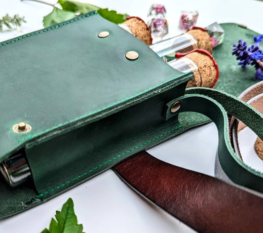 THE RELIC KEEPER - DICE POUCH - GENUINE LEATHER - WITH GLASS VIALS