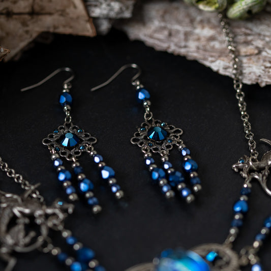 "DRAGON TREASURE" - HIGH FANTASY DRAGON JEWELRY SET - METALLIC BLUE - ANTIQUE SILVER