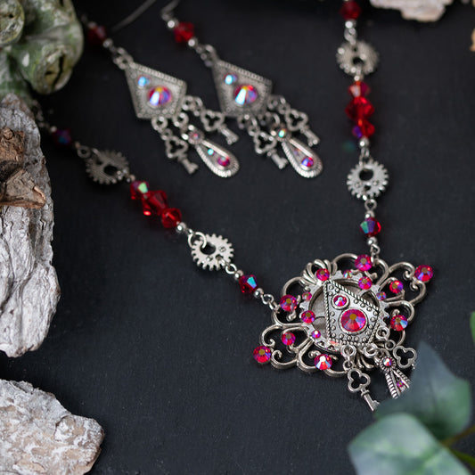 “CRYSTAL KEYS” – STEAMPUNK INSPIRED JEWELRY SET - ANTIQUE SILVER