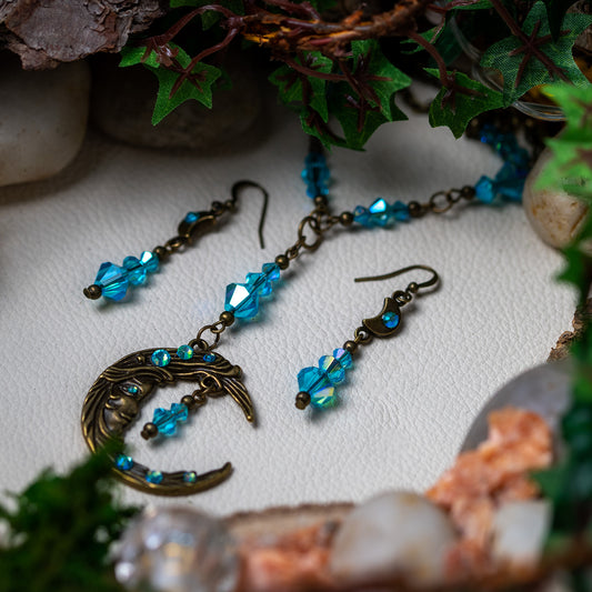 “GOODBYE MOONMAN” – WITCHY STYLE JEWELRY SET – TURQUOISE AB – ANTIQUE BRONZE